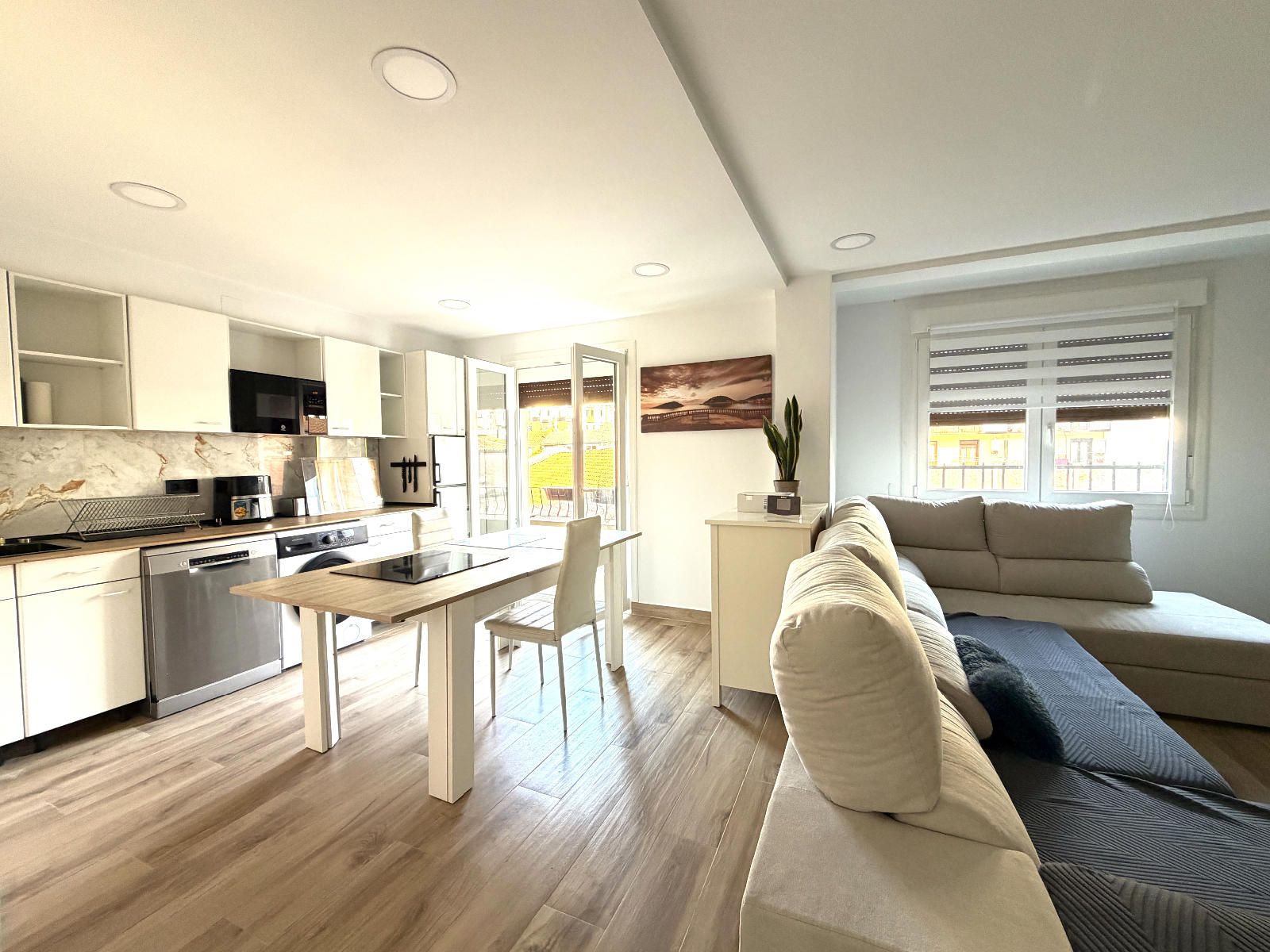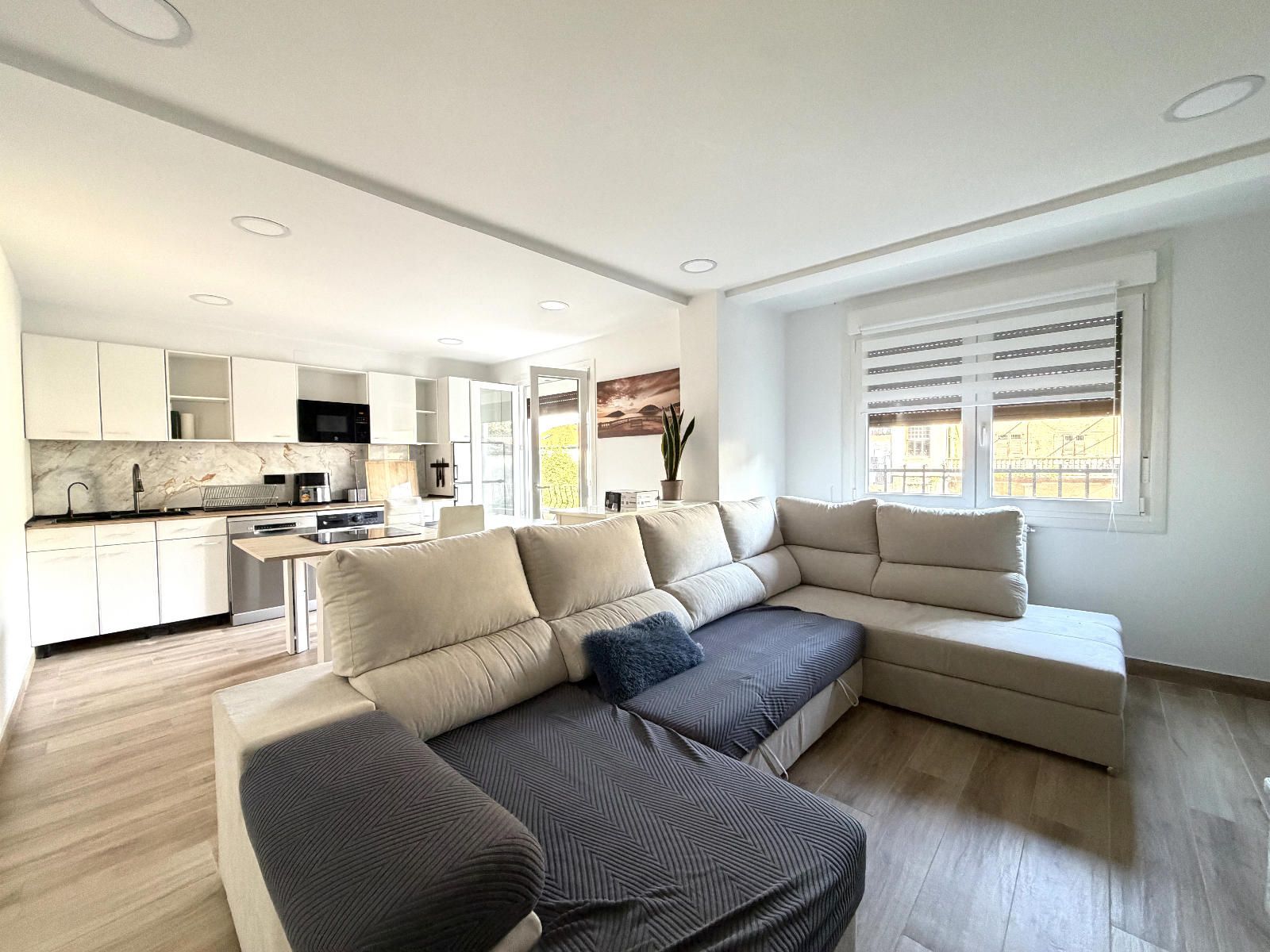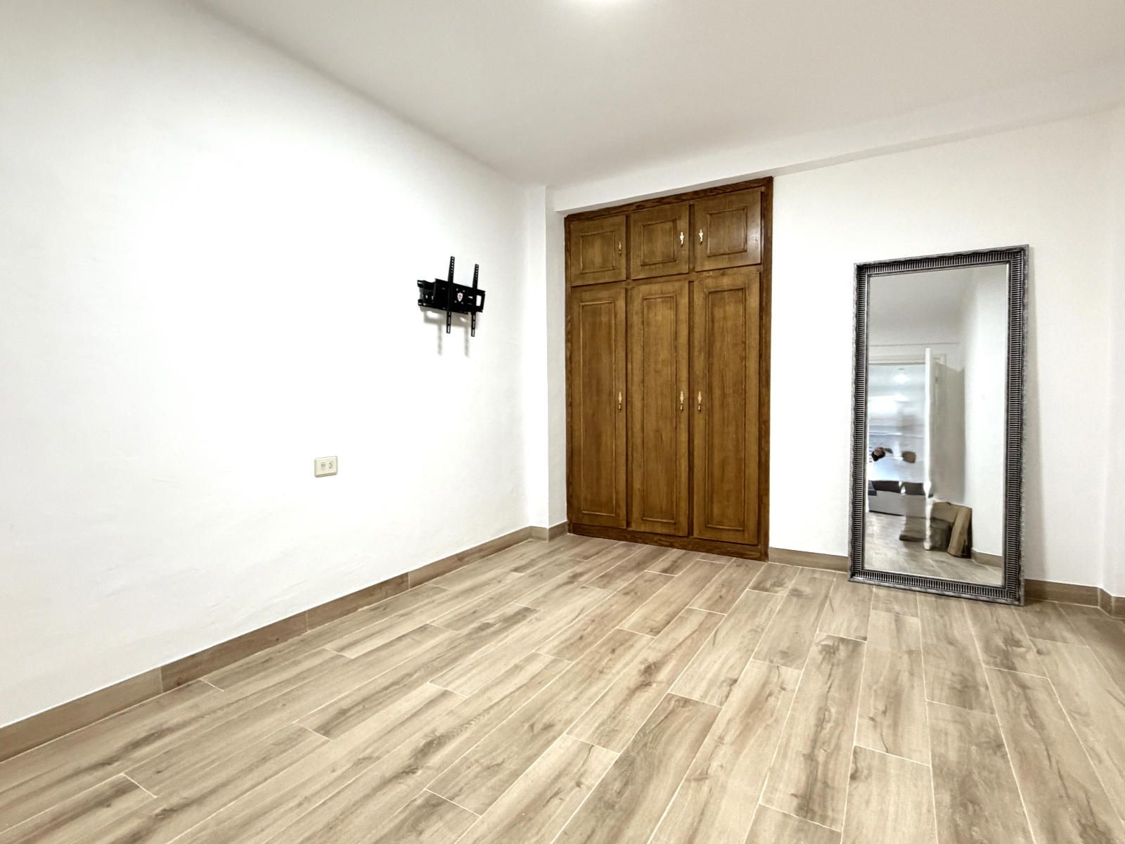 La vivienda cuenta con tres habitaciones, una de ellas equipada con armario empotrado. Dispone de un  amplio y luminoso salón abierto a una cocina, con salida a un balcón, totalmente equipada, con moderna iluminación LED que aporta un ambiente acogedor y funcional. El baño, con plato de ducha, completamente renovado, con diseño tipo suite y doble acceso desde dos estancias, que ofrece comodidad y privacidad. Además la propiedad incluye un práctico trastero que incorpora un vestidor en su interior, aportando un espacio extra muy versátil.