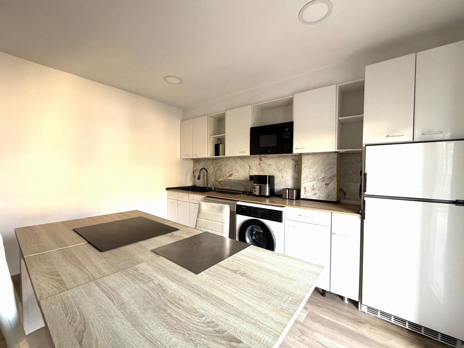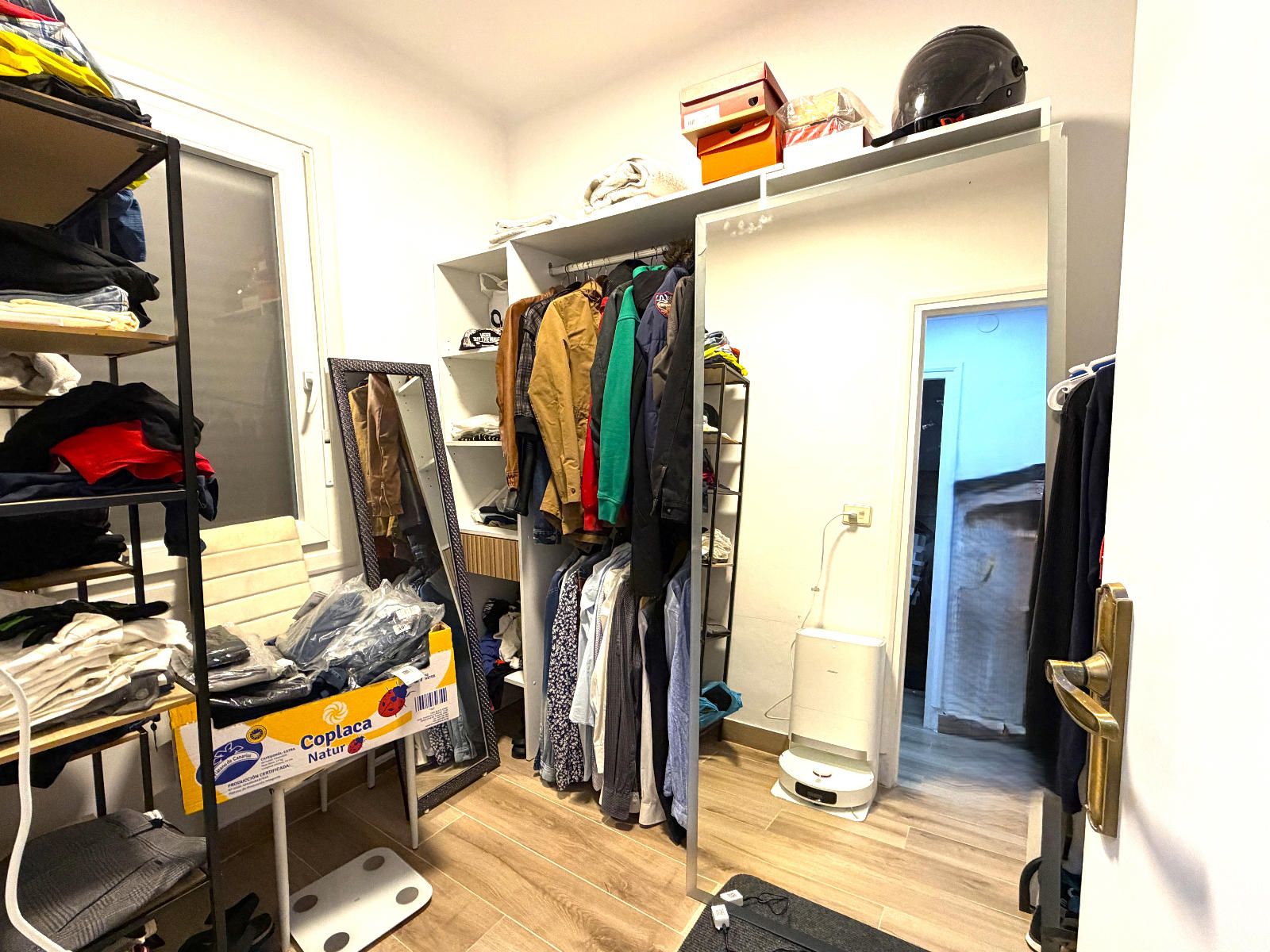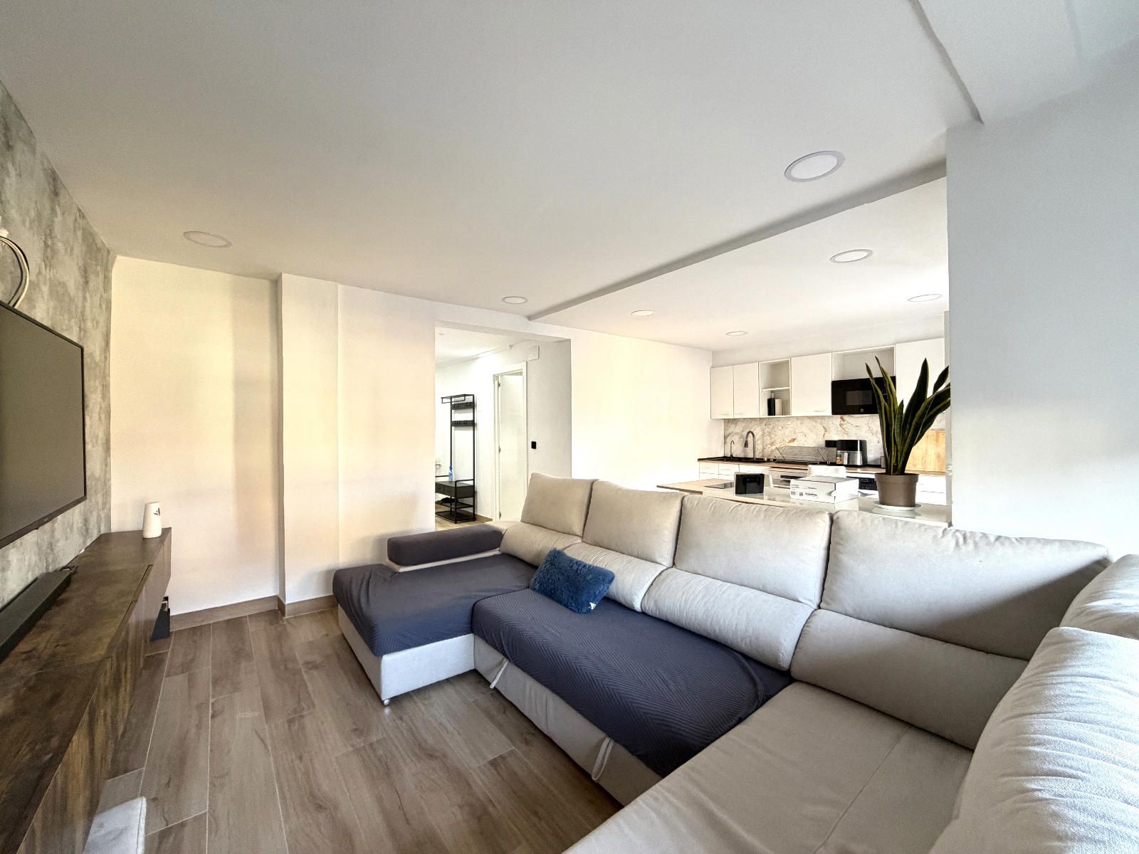 La vivienda cuenta con tres habitaciones, una de ellas equipada con armario empotrado. Dispone de un  amplio y luminoso salón abierto a una cocina, con salida a un balcón, totalmente equipada, con moderna iluminación LED que aporta un ambiente acogedor y funcional. El baño, con plato de ducha, completamente renovado, con diseño tipo suite y doble acceso desde dos estancias, que ofrece comodidad y privacidad. Además la propiedad incluye un práctico trastero que incorpora un vestidor en su interior, aportando un espacio extra muy versátil.